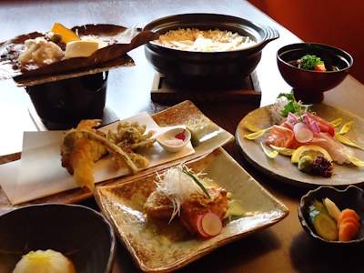 | ※季節限定の主菜や、素麺とかやく飯を組み合わせた御膳もご用意しております | |